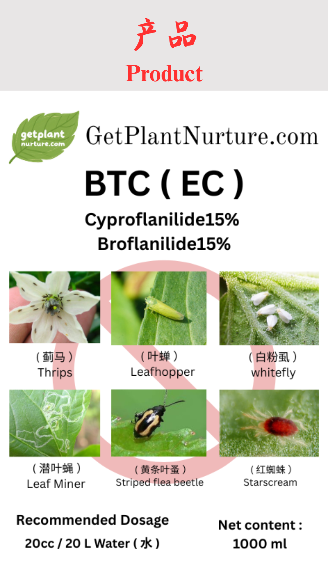 BTC (EC) is a highly effective insecticide formulated with Cyproflanilide 15% and Broflanilide 15%. This powerful formulation provides broad-spectrum control against key agricultural pests, helping farmers protect their crops and increase yields.